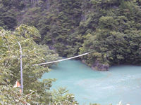 バイクを停めて夢の吊橋を見に渓谷添いを歩き出します・・・。