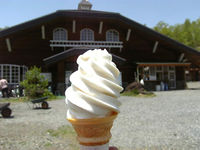 いつもの場所と、撮る前にかじられた濃厚ソフトクリーム。