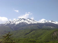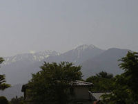 スーパー林道の途中から見え始めた乗鞍岳。まだまだ雪が深く残ってます。
