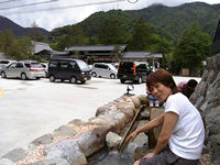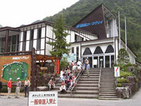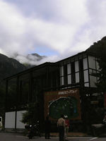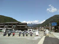 右は平湯のバスターミナル。いつもの様にバイクの集団がいました・・・。いいっすね〜!