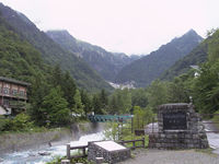 少々雨模様の空ですが、涼しくて気持ちが良いです。30分ほどで平湯に到着。