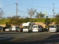 前夜からの車やトラックがかなり泊まっており結構賑やかしい。