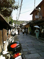 舞妓衣装を着た人も歩いており、結構情緒のある小路です。