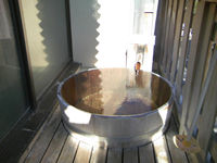 お風呂は・・・、露天とは名ばかりの外が見えない一人用の狭い風呂。