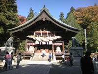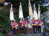 中心に有る諏訪大社下社では御柱祭の木遣り唄もご披露されていた。