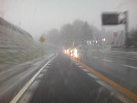 奈良井を越えた辺りから雪模様に。今シーズン初めての雪道走行!