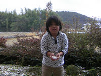 姪っ子です・・・、珍しくあられが降ってきて、その度に外で拾い集めてます。
