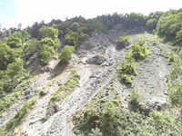 川沿いの山肌には崩落している所が何ヶ所もあった。