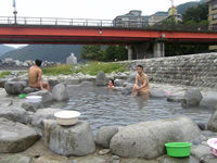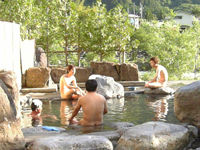 一時間少々で、いつもの野天風呂に到着。数人が入浴中。