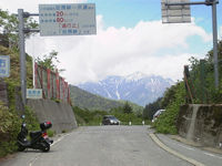 峠を過ぎ暫く走ると、今度は焼岳への登山道の入り口が見えてきた。