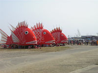 ふらっと豊浜港の近くに有る広場に行くと、鯛の張りぼてが4体鎮座してました。