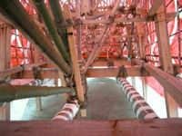 右の写真は鯛の張りぼての内側ですが、かなり細かく軸が組まれていて、