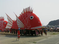 最初は別の張りぼてかと思ったのですが、見かける鯛は全て黒。