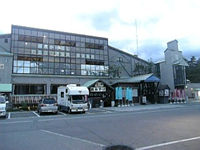 帰る頃には駐車場も満車状態。そして外から見た駅の建物。