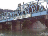 大きな橋に掛かっているカヌー大会の垂れ幕。