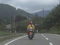 レースに出ない私ら3人は、カメラ片手にバイクで応援に回ります。
