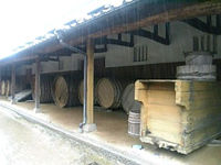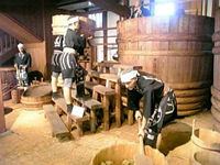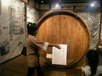桶の直径は2mほどあって、およそ6t分の味噌を生産するらしい。