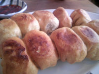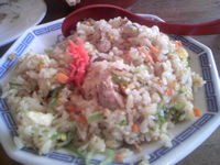 いつものお店で買い物し、そしていつものホワイト餃子で昼飯タイム。