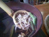 5.6回潜らせた後はお椀に入れて、鍋から出汁と具を加えるだけ。