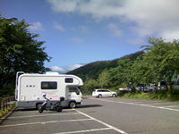 駐車場は少し斜面になっているけど、広くて静かでP泊にはよいかもね。
