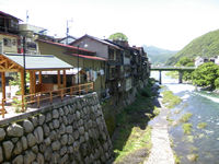 足湯があったり、川沿いにぎりぎりに建つ家並みがあったり・・・、