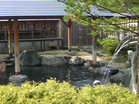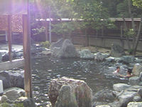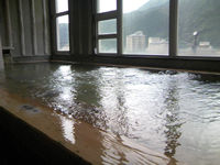 ヒノキ風呂が一つだけの温泉だが、窓越しに下呂の噴泉地も見え眺めは良い。