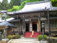 集落の一番奥の山の麓にあり、遠くからでも建物と幟が目立って、