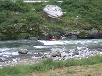 すぐ下の川は、ラフティングやカヌーのメッカで、今日もカヌーの練習艇がたくさんいた。