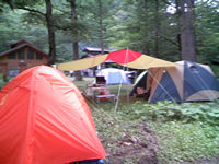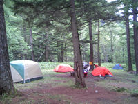 河童橋の少し奥にあるキャンプ場で、目の前には穂高連峰が見える贅沢な場所。