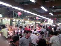 狭い路地にお店がぎゅうぎゅう詰めに並んでいる。