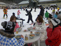 その日はスキー場近くの湯星館に入っただけで、そのままスキー駐車場で早い時間から宴会。
