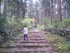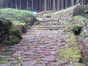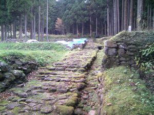 そしてこの(復元された)石畳は3千数百の坊の有った所まで上っていく階段だったよう。