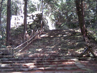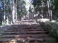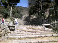 左は大手道!幅が6m位有って、更に200m位この石段が続いている。