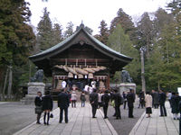 大社では誰かが結婚式を挙げているようで、その周りは結構な混雑振り。