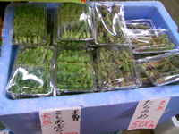 この時期、わらびやたらの芽・こしあぶらなど、春の山菜が所狭しと並んでいるが、