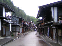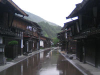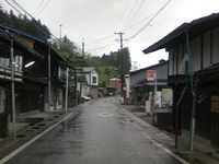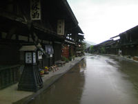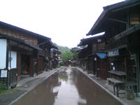 でも、朝も早いし雨も降っているし・・・、この時間に宿場内を走っているのは私たちだけ・・・。