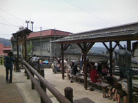 道の駅ではイベントの真っ最中で、臨時の足湯を開いたり温泉饅頭などを配っていた。