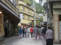 狭い路地に、ここまでするか!?っと言うくらい旅館がひしめき合っている