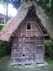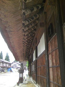 入り口に立つと萱葺き屋根の大きな断面が見える。