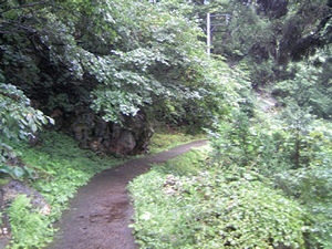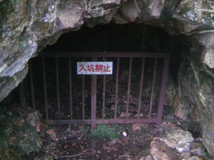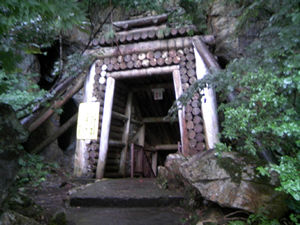 少し奥まで歩いていくと・・・、とっくの昔に閉山している銀鉱洞があった。