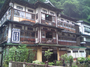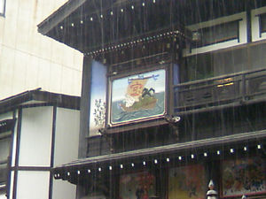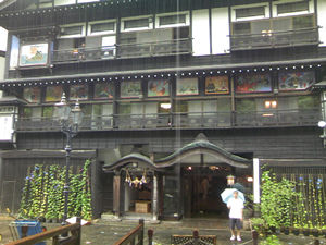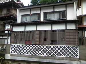 ちなみに建物に向かって左側にある戸袋?には、旅館毎に違う漆喰絵?が書いてある。