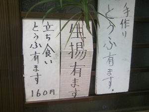 お風呂上りに通りにあった豆腐やさんで立ち食い豆腐を頂く・・・(嬉)。