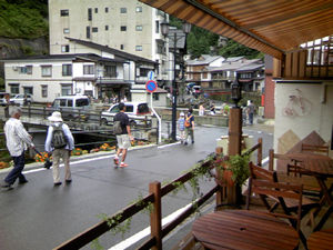 私だけでなく観光客の皆さんも、橋に立って温泉街の写真を撮りまくっている!
