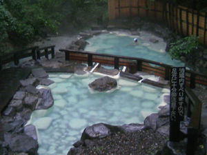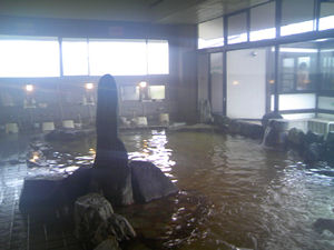 お金を払って脱衣所に入っていくと・・・、目の中に大きな露天風呂だ入ってきた!