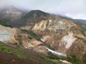 どうやら、ここは御釜への登山道のようで、看板にはここから1時間と書いてある(驚)。