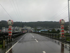 町の入り口では、こんな大きなこけしがお出迎えしてくれる。