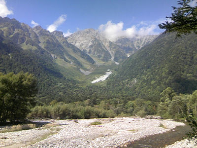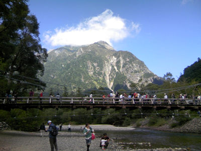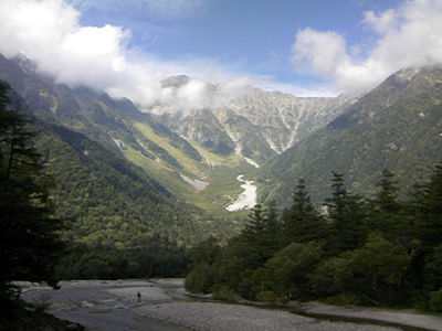 河童橋から見た穂高連峰。