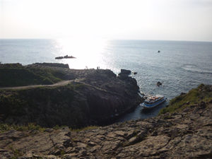 見飽きた景色だが岬の先っぽまで歩いて観光終了〜。
