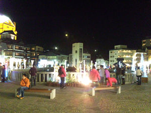 慌てて再び湯畑に飛び出していき、歩きながらの宴会開始!