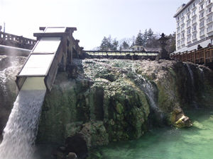 湯畑目の前にある白旗の湯・そして湯畑から歩いて5分にある地蔵の湯。
